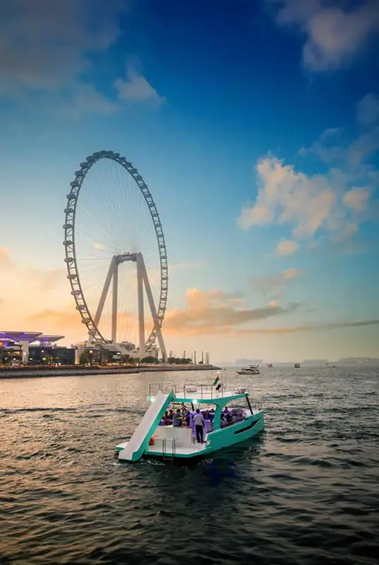 Lotus Embark on the Mega Yacht, sailing toward Atlantis Hotel. Marvel at the stunning view of Palm Jumeirah and Blue Water Islands. The breathtaking views take center stage as you cruise through Dubai’s turquoise waters. Enjoy a diverse buffet of international cuisines and a wide selection of soft drinks and alcoholic beverages (depending on the package). The cruise will start and end in Dubai Marina.